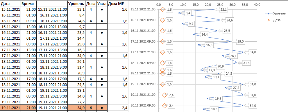 Сахар скачет от 5 до 23, перешли на однократное введение Канинсулина, либо двукратное, при повышении сахара более 13 единиц.