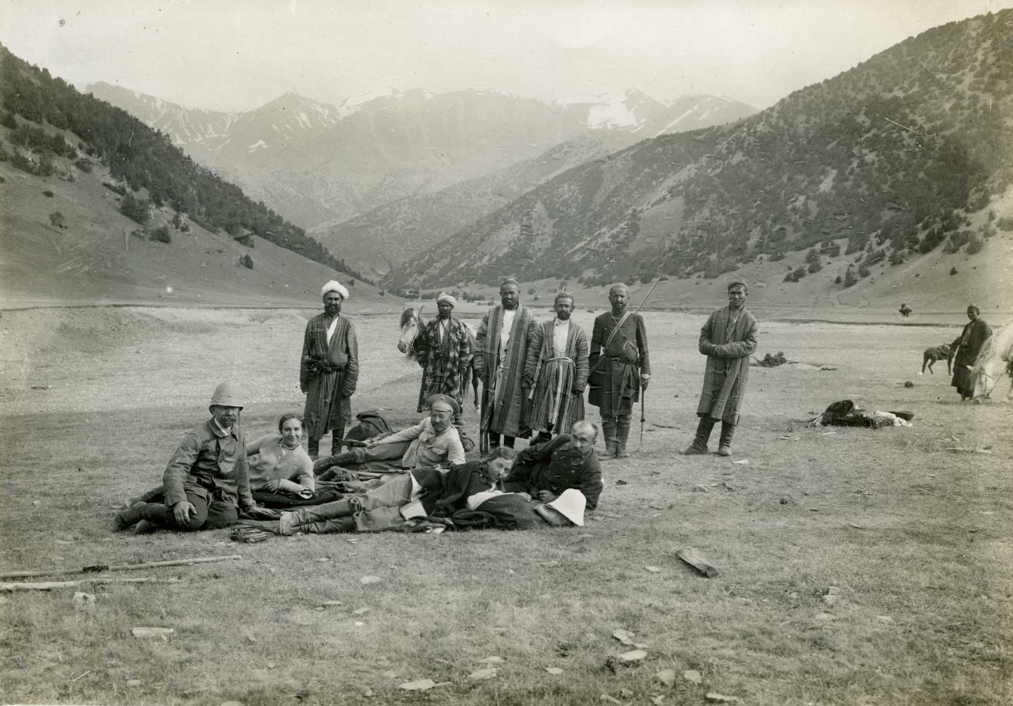 Участники эспедиции Переселенческого управления в Андижанском уезде Ферганской области в 1911 г. На переднем плане О.Э. фон Кнорринг и З.А. фон Минквиц. Из фондов Ботанического музея БИН РАН.