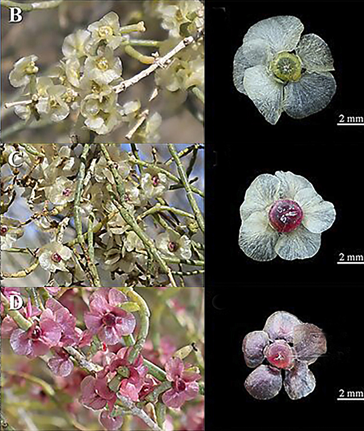 Плоды зайсанского саксаула разного цвета с крыловидными выростами, похожими на лепестки. Фото с сайта researchgate.net.