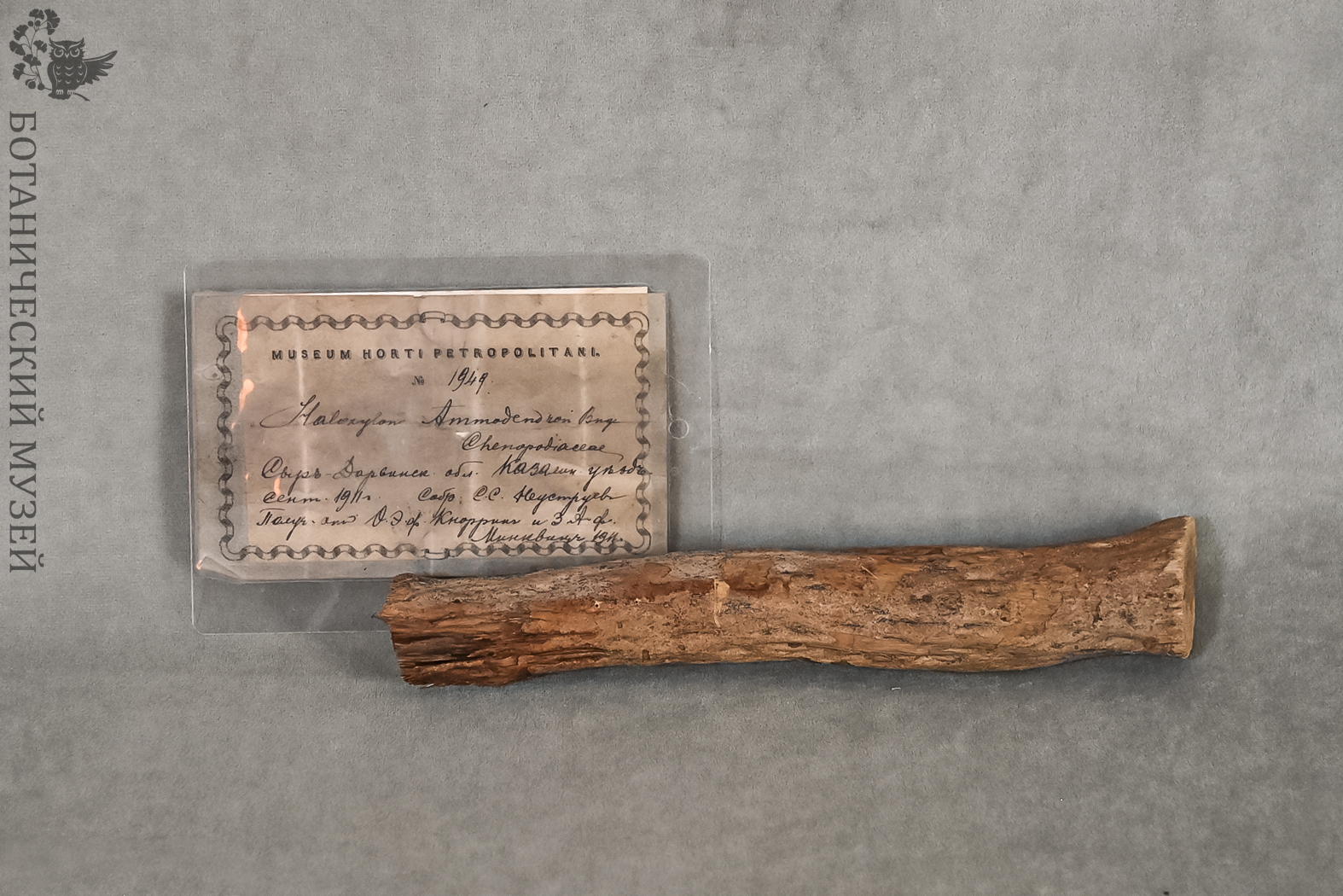 Другие образцы привезены О.Э. фон Кнорринг и З.А. фон Минквиц из экспедиции Переселенческого управления в Андижанский уезд Ферганской области в 1911 году. Раньше в экспозиции музея экспонировался в засушенном состоянии целый куст зайсанского саксаула. К сожалению, он не пережил военного времени.