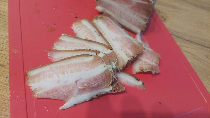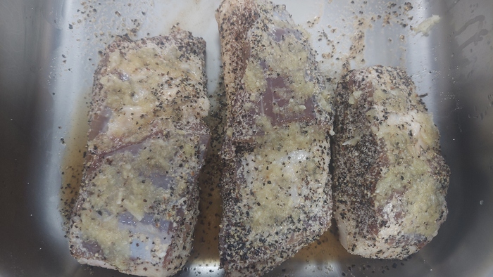 Соль нитритная - 2% от веса мяса - 20 грамм (можно полностью обойтись поваренной, но тогда её должно быть 3,5% в общей сложности, так как нитритка менее соленая. Ну и цвет конечно же не будет таким ярким)