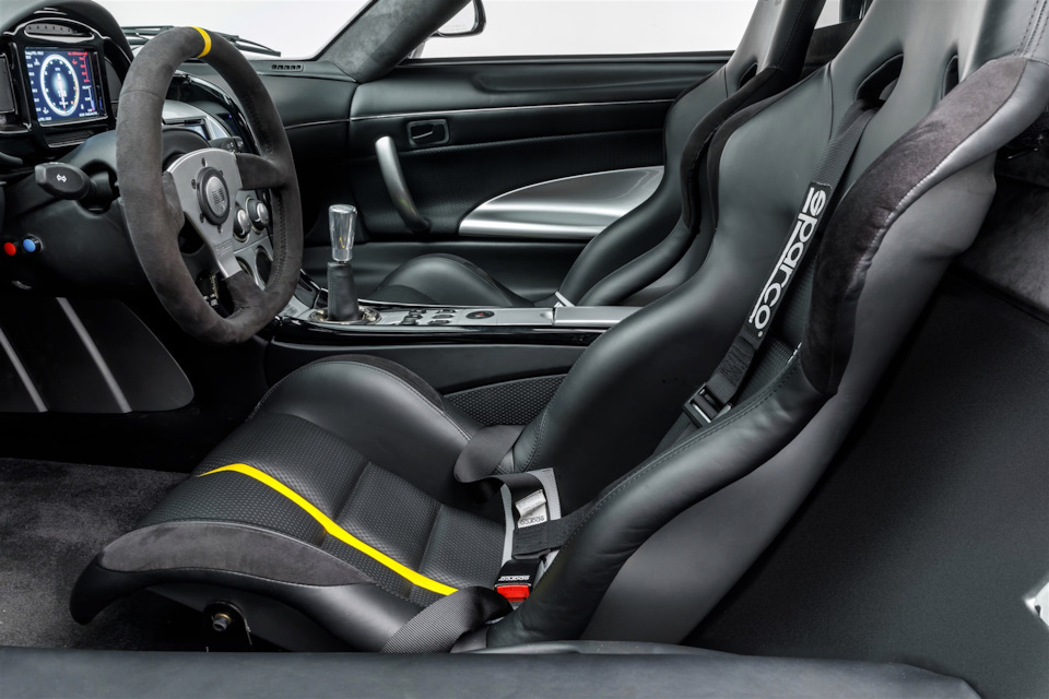 S7 был добротно оснащен: богатая отделка, кондиционер, регулируемая рулевая колонка, что особенно кстати, учитывая, что кресло жестко зафиксировано). Кузов карбоновый, а колеса с центральной гайкой – автомобиль родом из автоспорта. Турбовая версия находился в производстве с 2005 по 2009 год, когда Saleen S7 окончательно сошел со сцены. Но в 2017 году компания Saleen объявила о планах перезапуска S7 в спец версии Le Mans. Речь шла о модернизации в заводских условиях подержанных S7 со значительным увеличением мощности. Автомобиль также получал гораздо более агрессивный аэродинамический обвес и измененную схему окраски. Хотя, без черных вставок вполне можно было и обойтись.