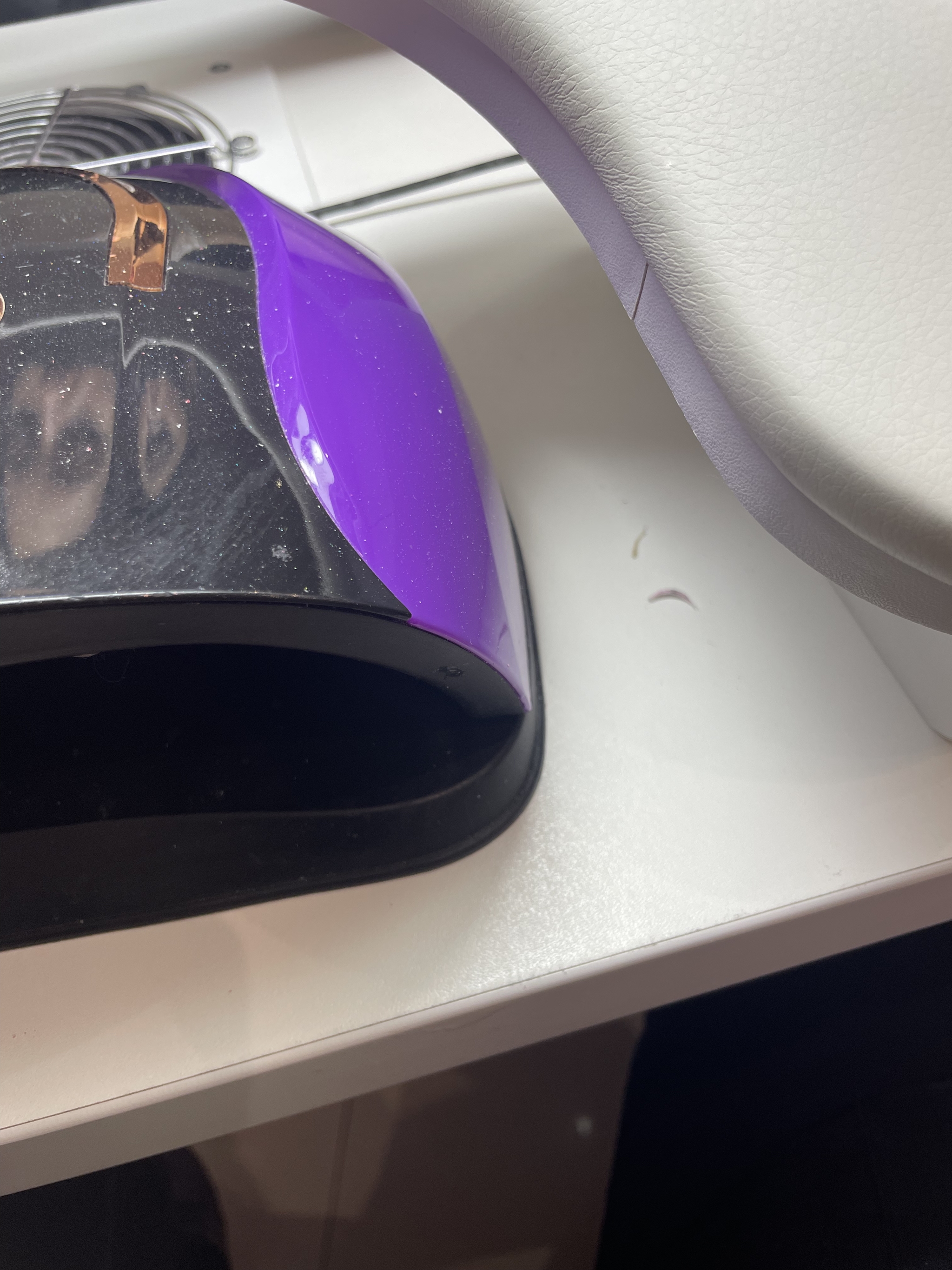 Пыль от ранее спиртных ногтей на лампе, да черт бы с ней, мастер же опоздала и возможно не успела протереть ее. Но правее мне открылась более интересная картина. Видели, да? Кусок кожи и ноготь. Вот тут, меня неженку,передернуло знатно.