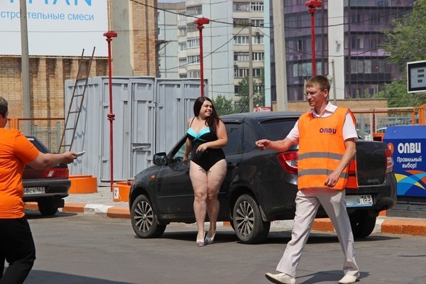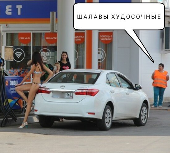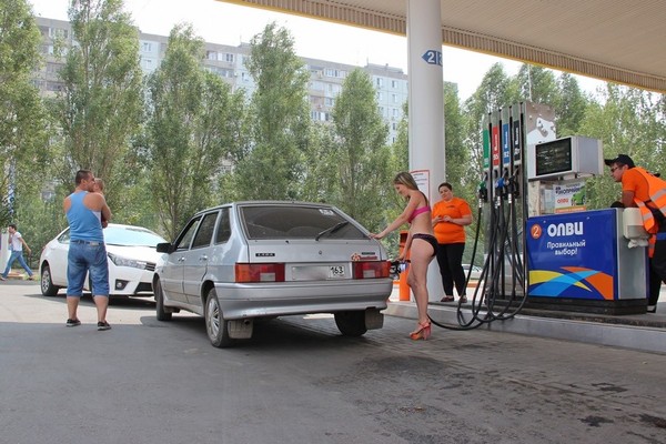 * Заехать на территорию АЗС в бикини (можно и мини)) и в туфлях на каблуках (читай как лабутены);