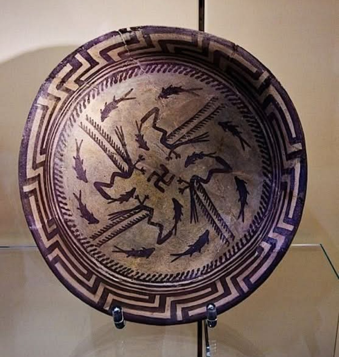 Чаша была раскопана в Самарре, ныне Ирак, около 1911-1914 гг. Ее дизайн состоит из обода, круга из восьми рыб и четырех рыб, плывущих к центру, которых ловят четыре птицы.