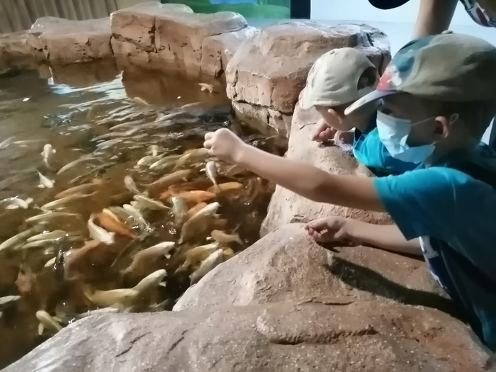 В Адлерском океанариуме тоже есть возможность покормить карпов. 40 минут не могла оттащить дочь от рыбок, она пыталась их накормить, чтоб все наконец наелись)) А я стояла и удивлялась, сколько они жрут: океанариум открыт весь день, кормят рыб охотно. А они едят, как не в себя😁