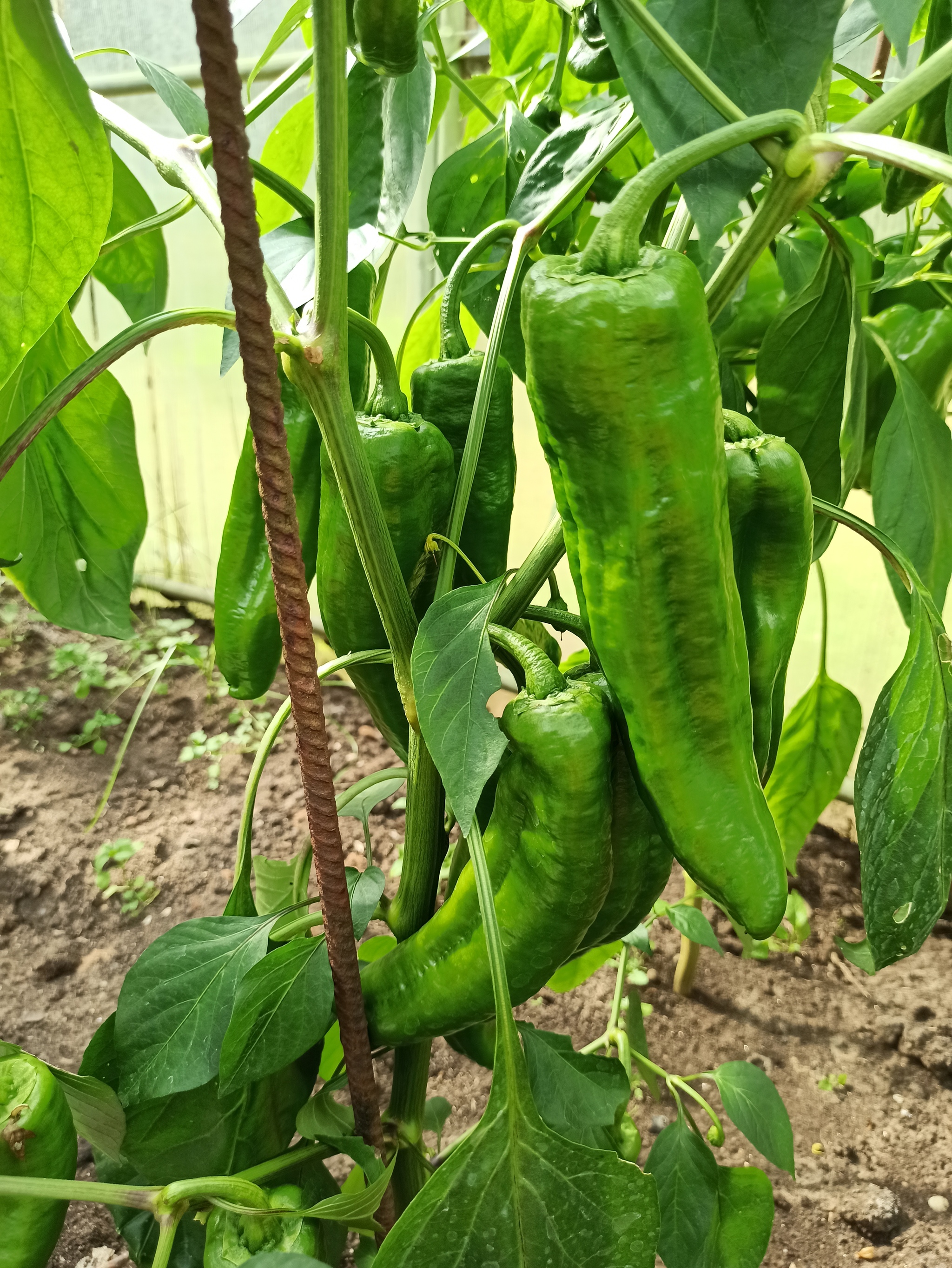 Рассада перцев превратилась в перцы. Жду, когда начнут краснеть, но на салатик уже крошу.