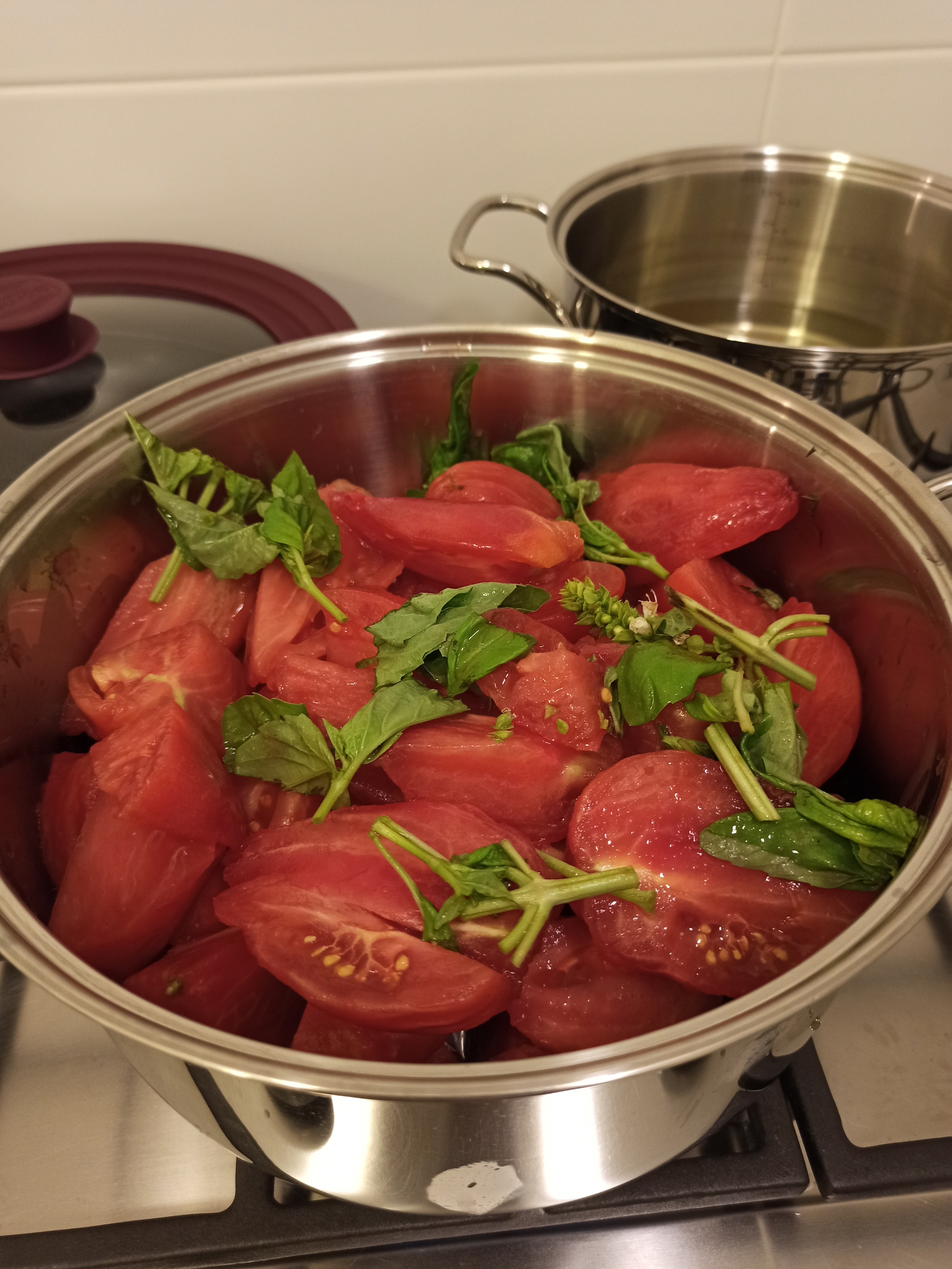 Вы спросите, зачем мне столько помидоров? А я делаю из них чумачечей вкусноты томатный сок и соус. Некоторые пикабушники даже пробовали. Намного вкуснее магазинного. Да чо уж там - офигенный сок получается!