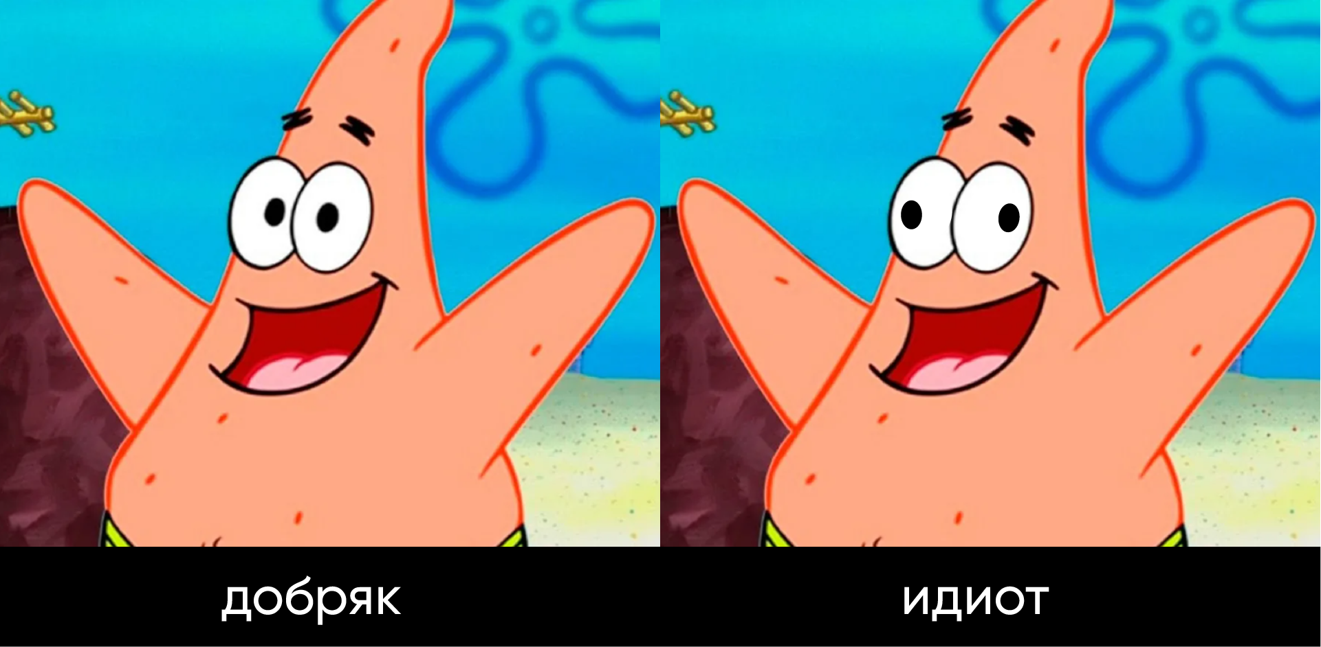 Видите разницу? Буквально несколько пикселей в расположении зрачков меняют восприятие зрителем персонажа.