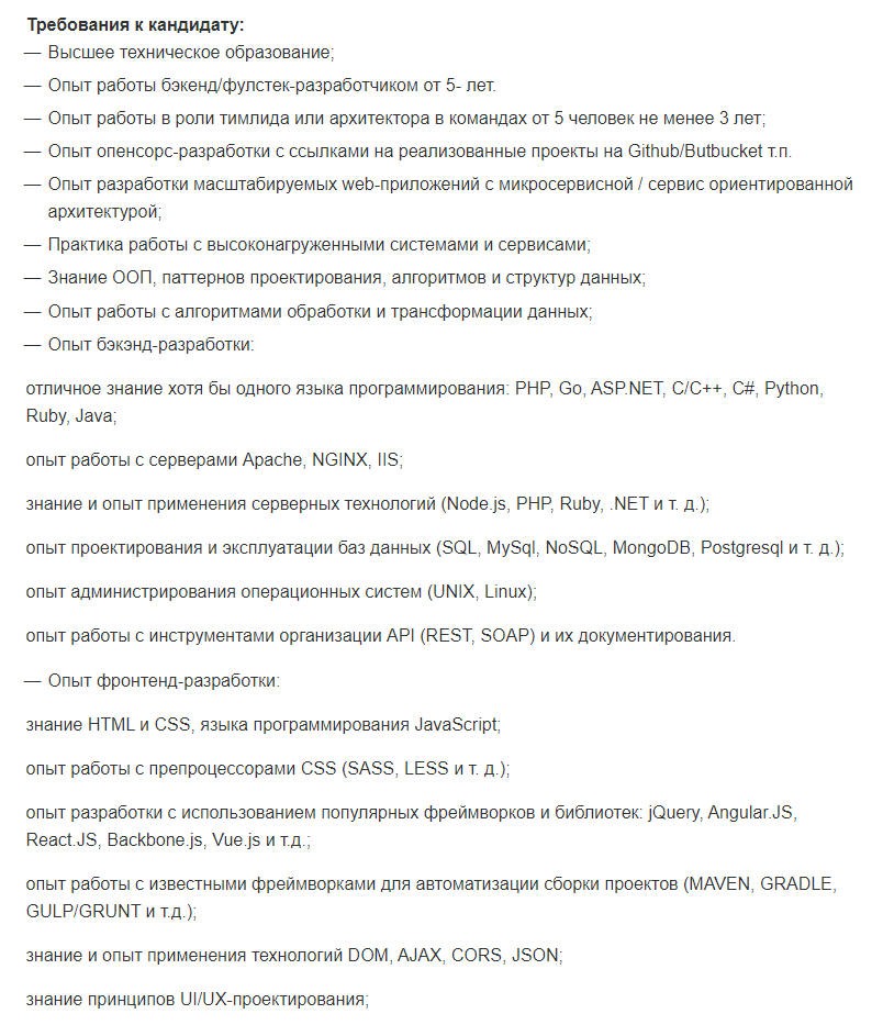 112 Аноним IT-юмор Самая длинная ИТ вакансия 3 года назад Шарился я недавно на HH и увидел ЭТО, и пожалуй это самая длинная вакансия которую я видел в своей жизни, похоже тут требуется ВСЕЭксперт департамента программной инженерииот 150 000 руб. до вычета налогов [моё] Вакансии IT Длиннопост 8 1 Ещё 0