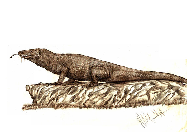 Многие уже могли догадаться, что в этом посте речь пойдет о мегалании — варане-исполине из плейстоцена Австралии. Сейчас ученые называют ее Varanus priscus, а мегалания считается названием-дублером. Ее актуальное название переводится как «древний варан», а устаревшее, но более популярное, — «большая бродяга». Мы будем пользоваться названием «мегалания», потому что оно привычнее. Да и называть такого гиганта просто «древним вараном» как-то язык не поворачивается.