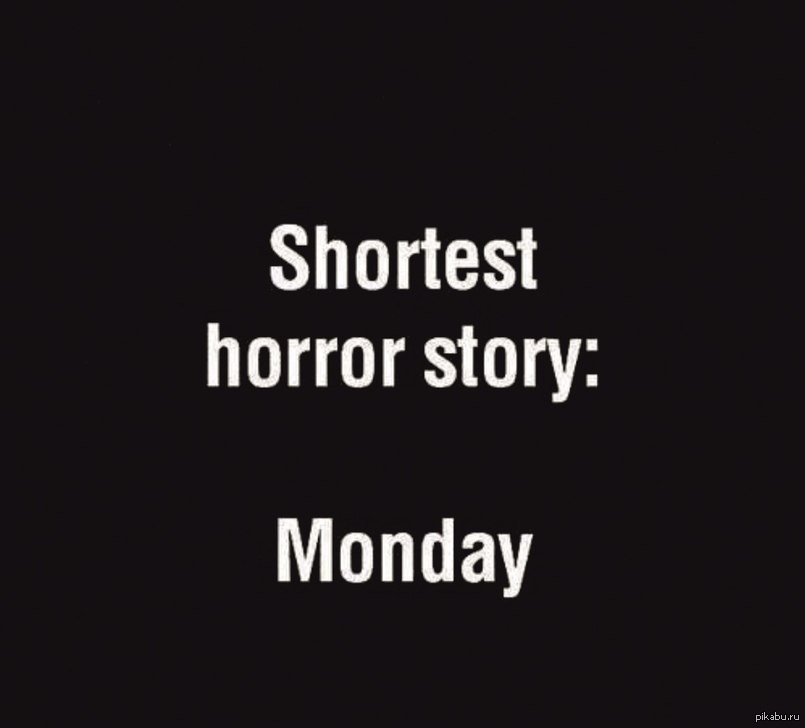 mubat Самая коротка ужасная история 12 лет назад Добросовестно спер отсюда: http://vk.com/wall-15787787_80482 Понедельник Ужасы
