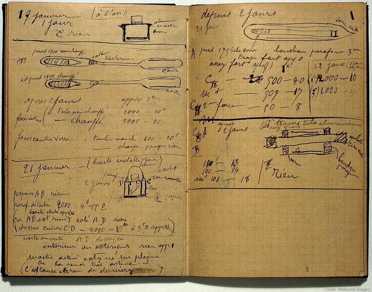 На снимке ниже запечатлена одна из записных книжек Марии Кюри.