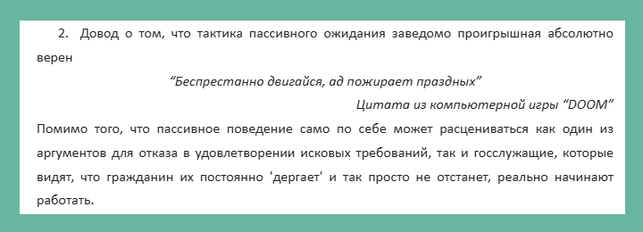«Будьте состязательны, будьте интеллигентны» значит, в первую очередь, противопоставление стратегии пассивного ожидания, что кто-то восстановит Ваши права.