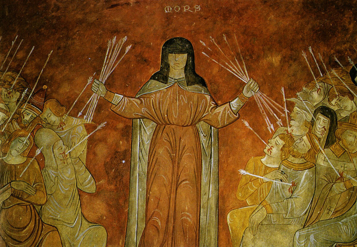 Роспись в церкви города Лавадье (Франция) изображает чуму в виде женщины с лицом, закрытым капюшоном