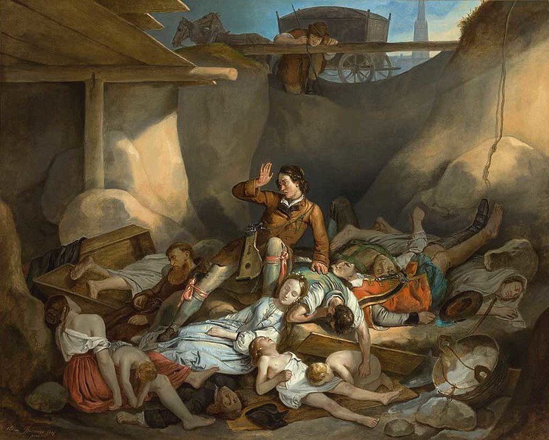 Рассказывают, что Августин был трактирным музыкантом и сильно злоупотреблял спиртным. В те дни по улицам ходили команды могильщиков. Они собирали тела умерших, свозили за город и сваливали в специальные рвы.