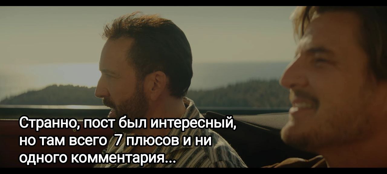 Кстати, рекомендую фильм к просмотру. "Невыносимая тяжесть огромного таланта", сам посмотрел по рекомендации пикабушника @Skalkin вот здесь: