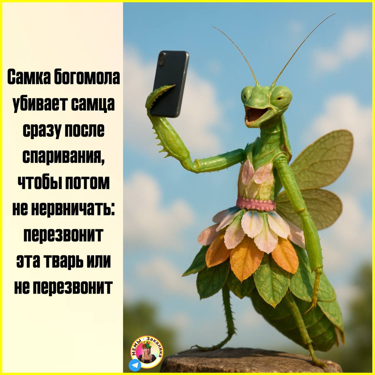 Zakalaka Юмор для всех и каждого Самка богомола мем Серия Мемы Закаляки 6 месяцев назад Сотни моих авторских мемов в тг-канале https://t.me/zakalaka [моё] Юмор Абсурд Богомол Самка Веселье Неожиданно Забавное Черный юмор Тег для красоты Любовь Злодейский смех Селфи Картинка с текстом 6 2 1 Ещё 0