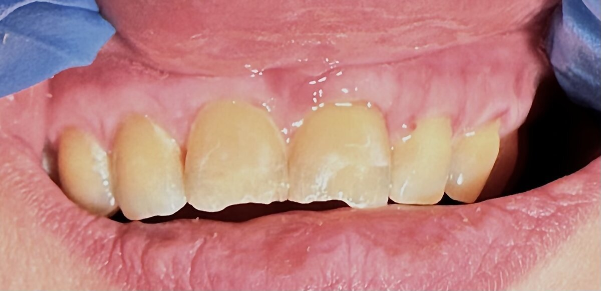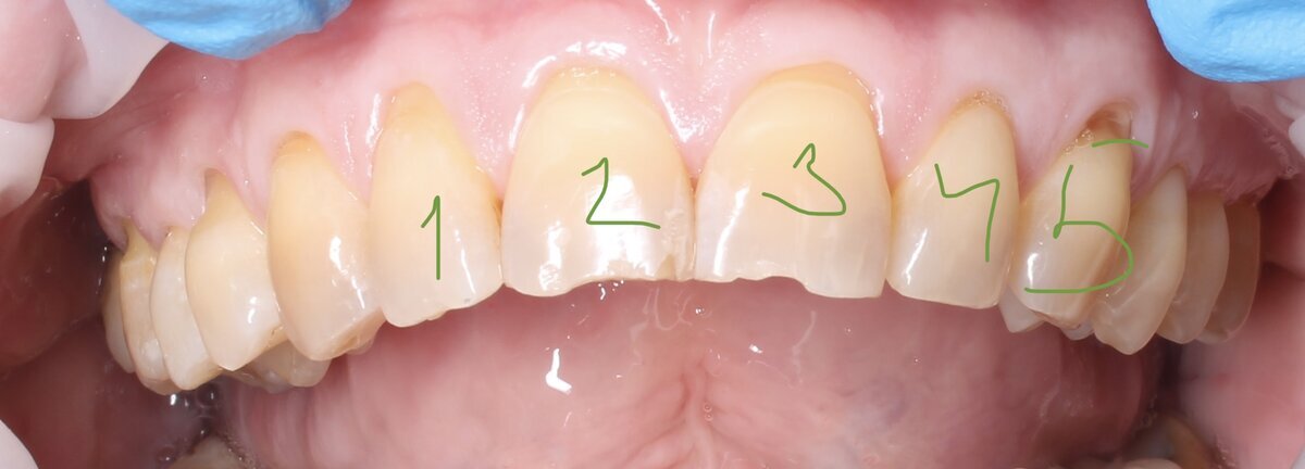 Пациентка планирует установку виниров на верхние фронтальные 5 зубов. С ортопедом они приходят ко мне и просят подсобить в этом хорошем деле.