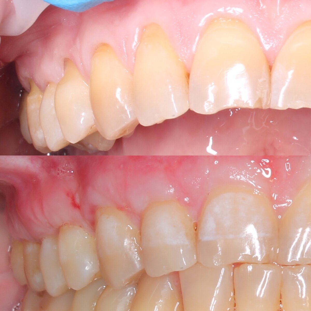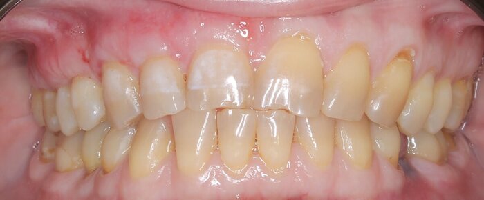 Как итог - пациентка очень довольна. Оказывается, она не призналась изначально, что были большие проблемы с чувствительностью зубов. Человек не верил, что операция поможет, все затевалось только ради эстетики.