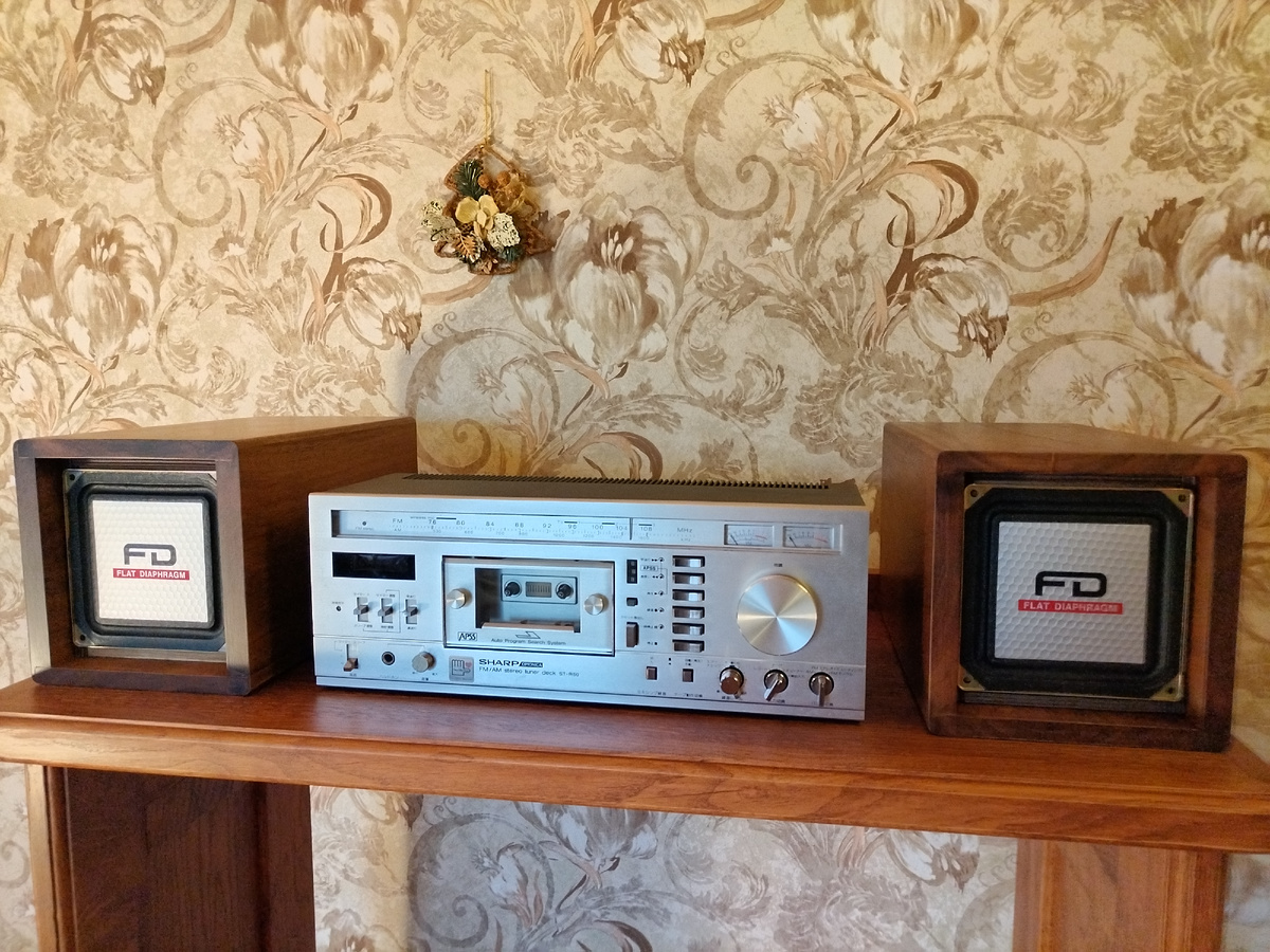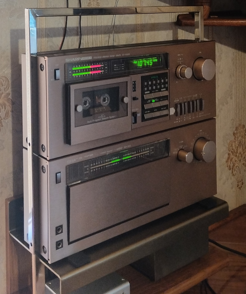 Не пропадать же добру-Сергей решил использовать колонки от этой магнитолы. По случаю был куплен не менее шикарный аппарат Sharp Optonica 79 года.