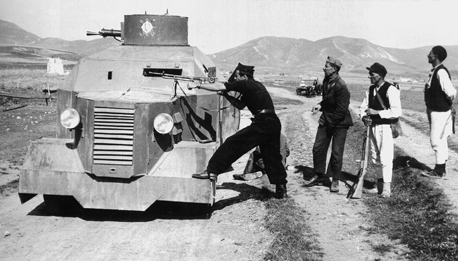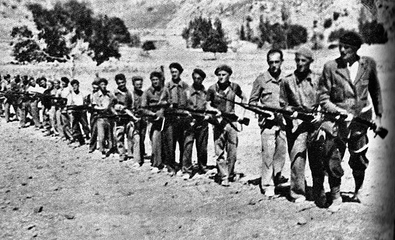 Марко Орешкович в республиканской Испании во главе бойцов югославского интернационального батальона "Джуро Джакович"; после гибели он сам даст имя партизанскому батальону (сконструировавшему "танк Тенко").