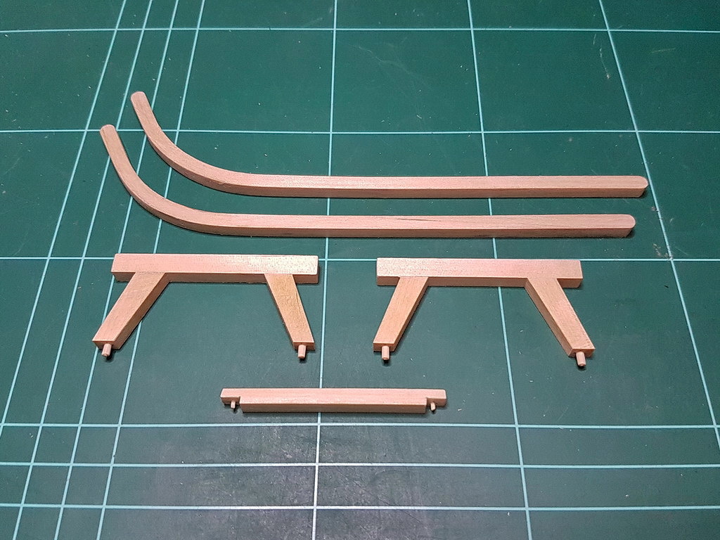 Крепились полосы к полозьям при помощи клея Момент и гвоздиков сделанных из булавок. На шляпках булавок острой гранью треугольного надфиля делался пропил, имитирующий прямой шлиц шурупа.