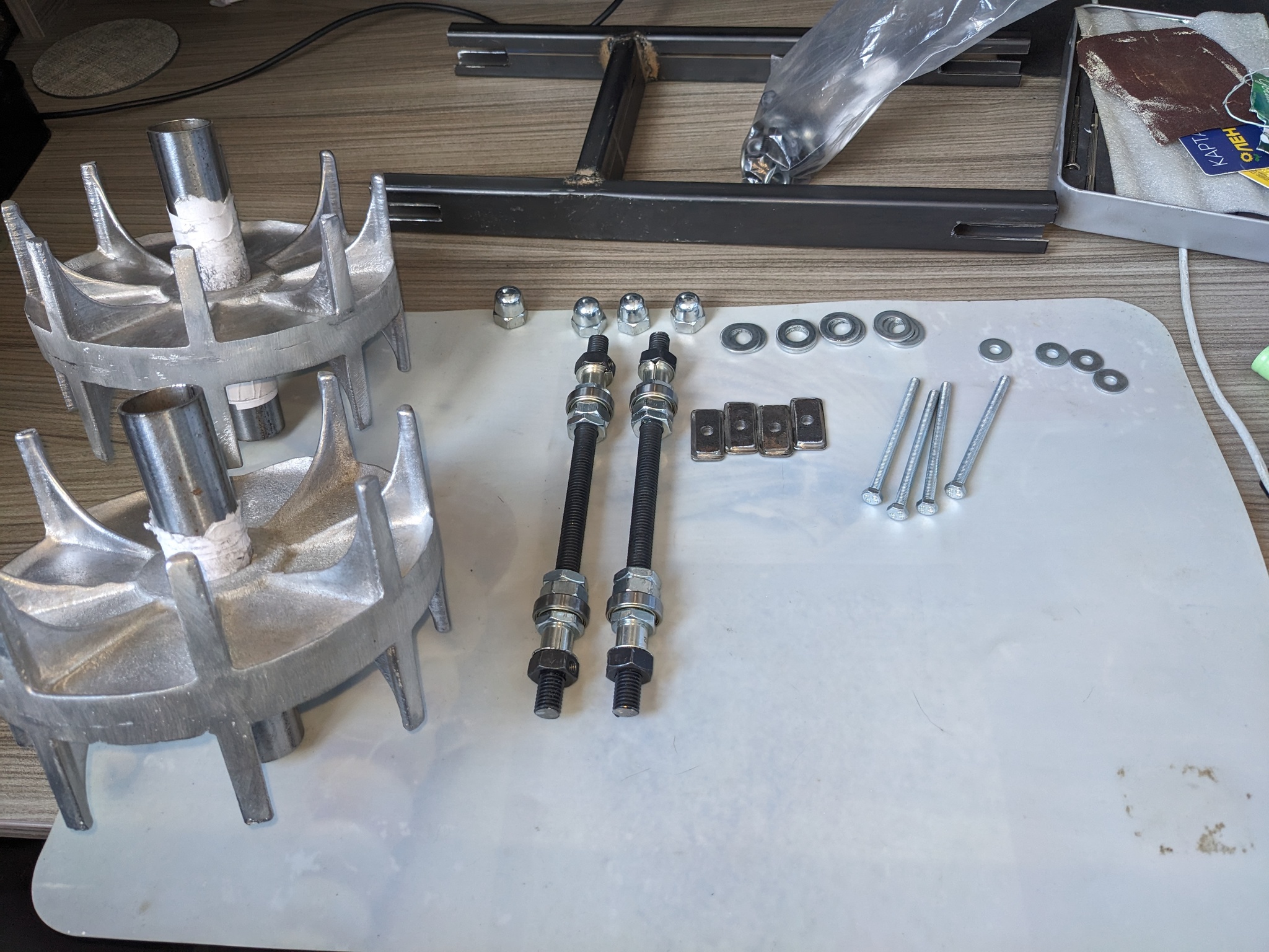 Вот такой ворох деталей пришлось собрать для осей колес :)