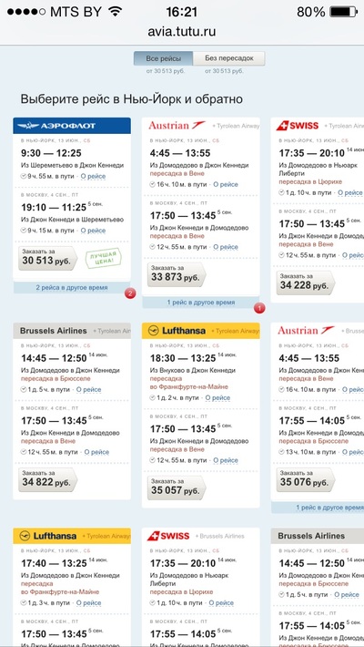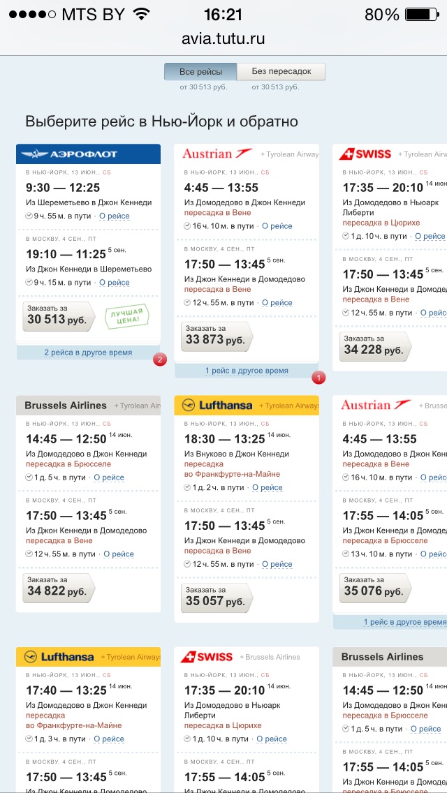 Я летом лечу в штаты на 3 месяца, потому билеты мониторю полгода где-то уже. Самые дешевые - у Аэрофлота за 22к в одну сторону из Москвы в jfk. Туда-обратно меньше 30к нет. Да и у вас на скрине один полет "туда" за 25к. Хотя вот tutu показывает такие цифры: Что это за сайтик у вас с такими ценами?