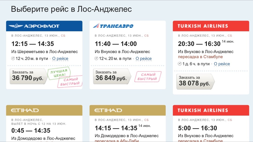 Думаю, дело в сезоне. Я-то лечу осенью - там точно дешевле. Сайт у меня Skyscanner, конечно. Он крайне неплох) Вы писали, что до ЛА дешевле 30 не добраться - я кинул за 24500, я вот к чему. На лето, туда-обратно в НЙ и правда дешевле 30 не вижу.