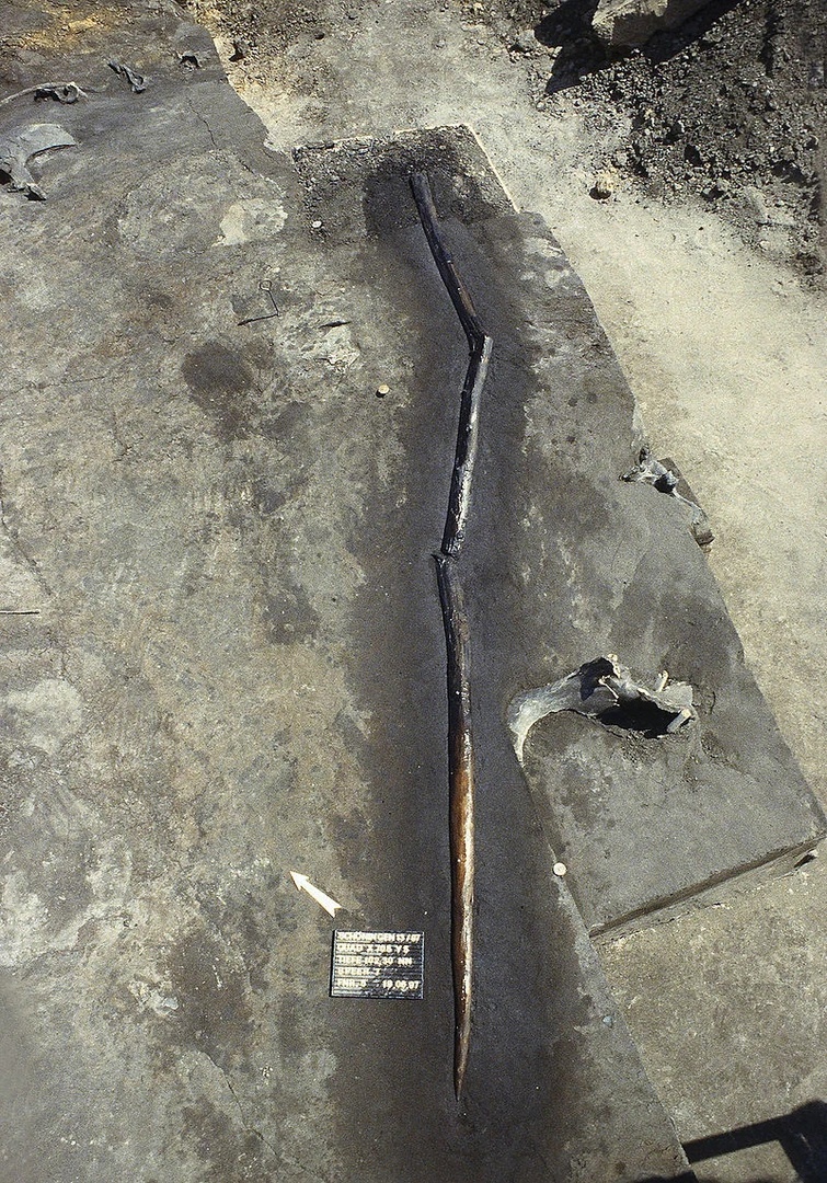 Если с копьями все было в принципе понятно, то один предмет, найденный в 1994 году вызвал споры - фрагменты еловой заостренной с двух сторон палки длиной всего 78 см. В качестве учебного копья она явно не годилась, поскольку была в 2.5 раза короче любого копья. Сохранились лишь фрагменты артефакта, а потому ученым не удалось прийти к окончательным выводам, однако находка еще одной такой палки расставила все по местам.
