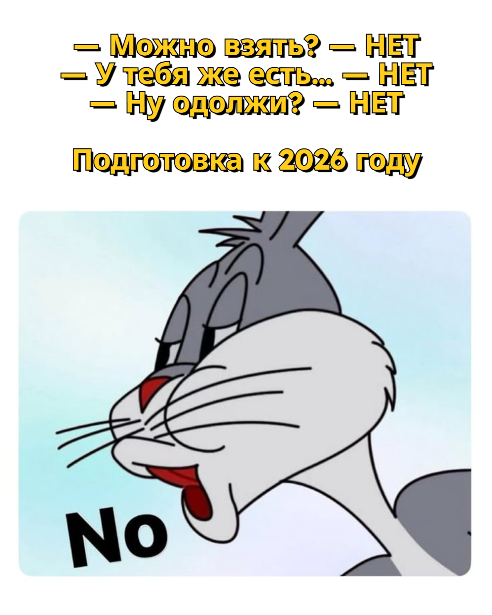 10 samez Юмор Самое полезное слово в 2026 году — “нет” 3 дня назад Картинка с текстом Багз Банни Долг Перевод Мемы 3 Ещё 0