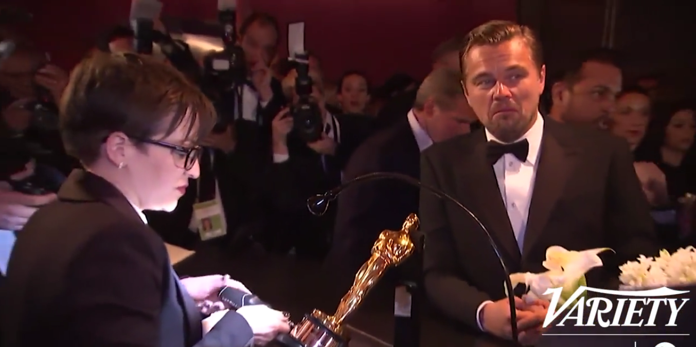Во время нанесения гравировки на долгожданную статуэтку Лео пошутил над самим собой.