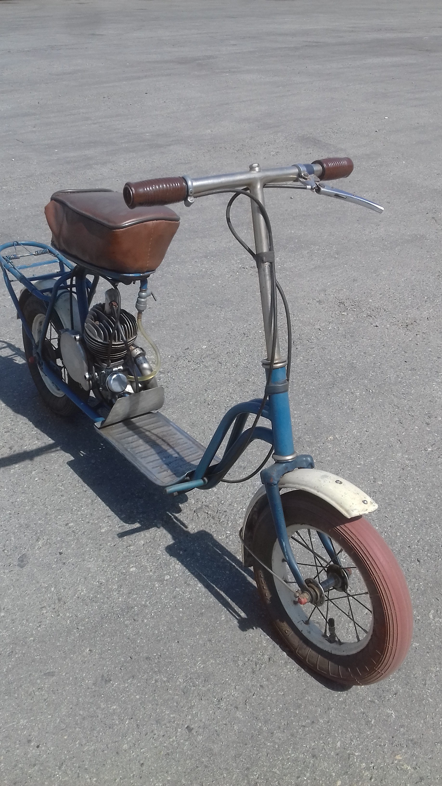 Заводское исполнение. Есть информация, что была сделана пробная партия на "Sarkana Zvaigzne". За основу взят самокат. Бак убран под седло. Рама усиленна. Тормоза барабанного типа задние. Привод - педаль под правой ногой. Передних нет.