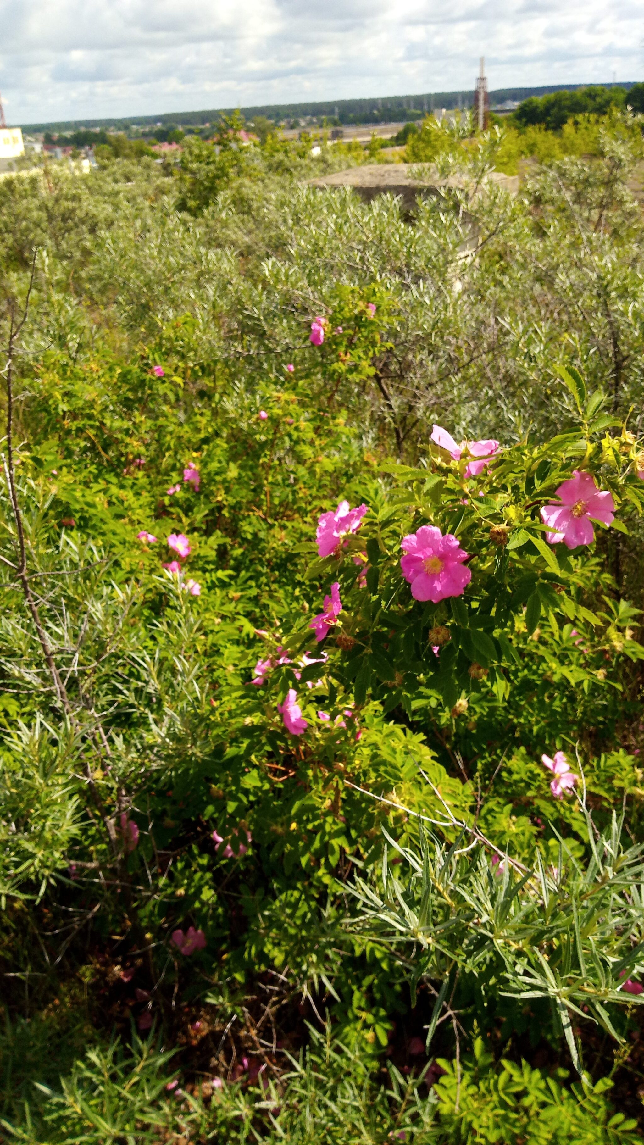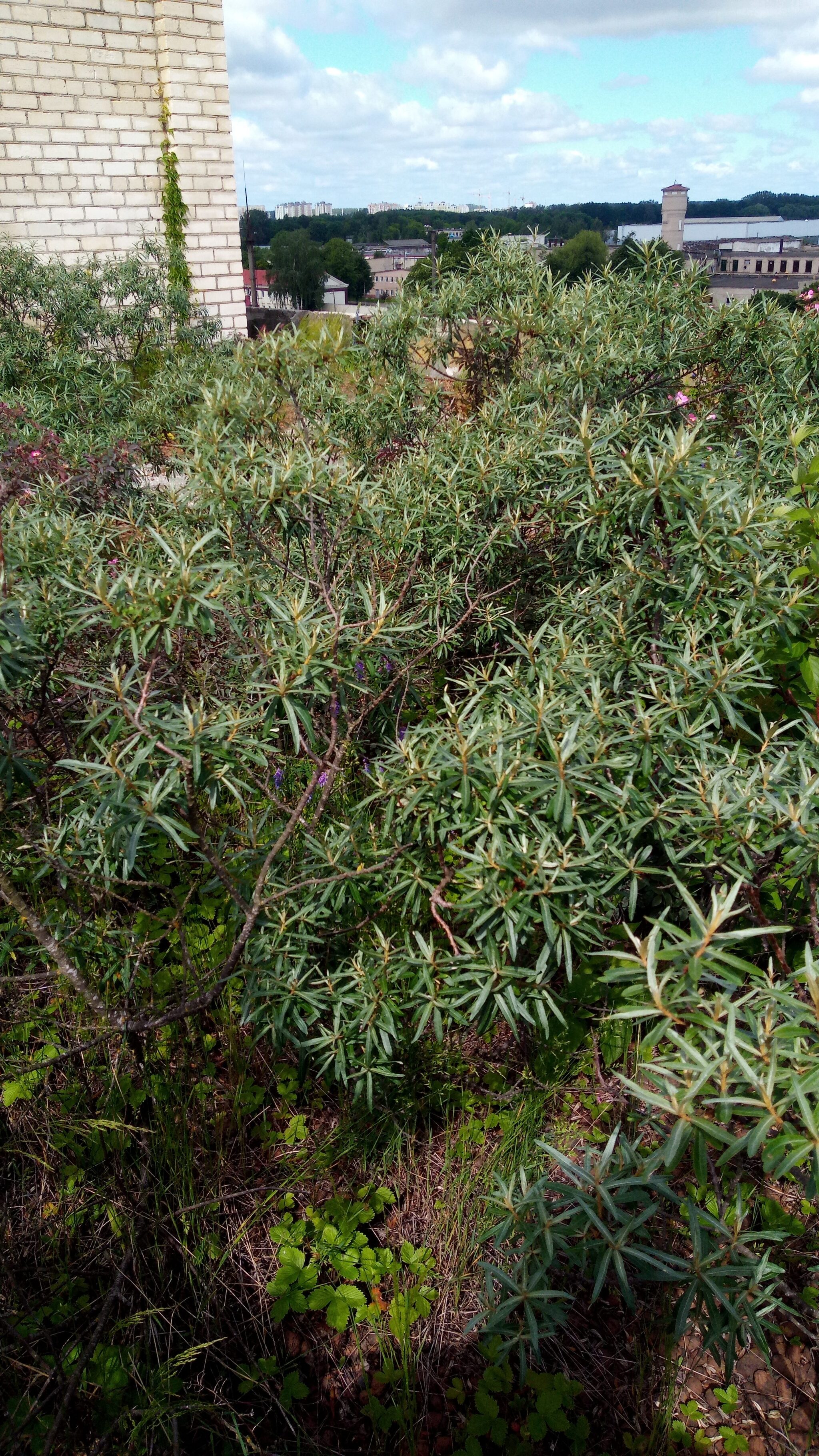 Все благодаря открытой подсыпке из керамзита. Попробуем точно подсчитать все растительное разнообразие что принесло ветром. В первую очередь это облепиха, березы, парочка молодых елей, несколько сосен, шиповник, травы в том числе и вьющиеся по кирпичной кладке, земляника..