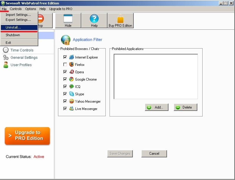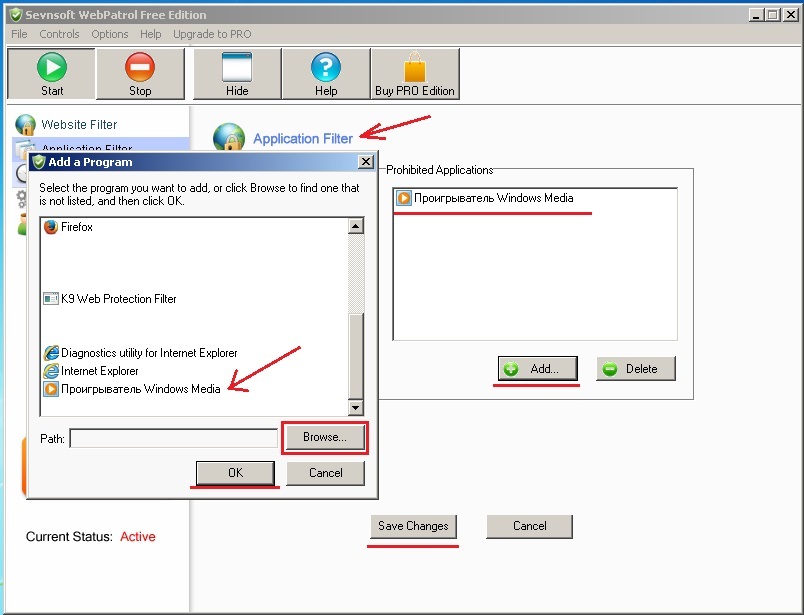 2) «Sevnsoft WebPatrol Free Edition» - второй наш вояка. Есть официальный сайт. Эту программу даже школьнику нелегко будет «снять», а если попытается, то только через нарушение работоспособности самой программы, что вы, конечно же, сразу заметите. Это типа горячего блока питанию у приставок. Далее всё по картинкам и немного перевода вдогонку.