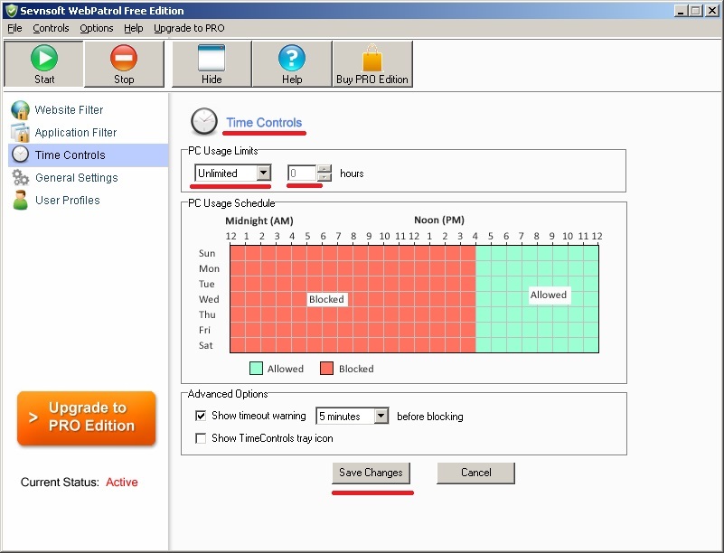 _PC Usage Limits «Ограничение времени использования ПК (в часах) » - Unlimited «Без лимитный» - Day limit «Лимит часов в день» - Week limit «Лимит часов в неделю» - по истечению этих часов, компьютер будет блокироваться, пока не введете пароль или не снимите ограничения.