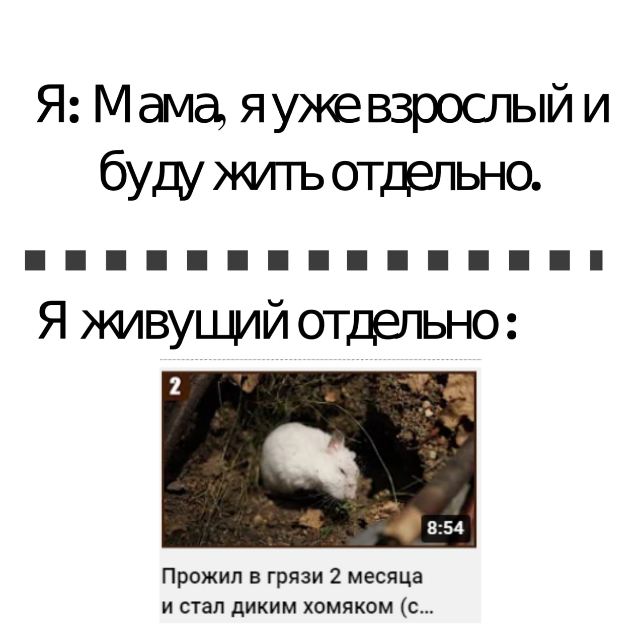 8 1MoHawk1 Юмор Самостоятельная жизнь 4 года назад Самостоятельность Съехал от родителей Мемы Юмор Хомяк 1 Ещё 0