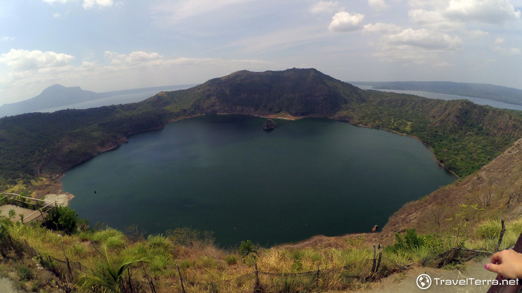 И вот он – кратер вулкана Тааль. Всегда представляешь себе, что там должна быть кипящая лава, но здесь нас ждало вполне спокойное внутреннее озеро со скальной кочкой немного не посередине этого озера (Vulcan point). О том, что мы видим именно кратер вулкана, говорило то, что мы стояли на гряде, которая кольцом опоясывало озеро.