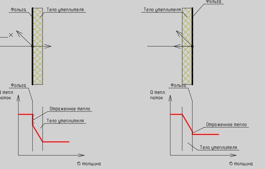 Фольга должна быть с той стороны, откуда нужно отражать тепло.