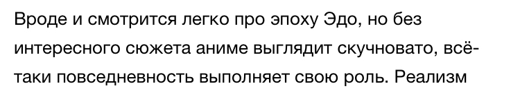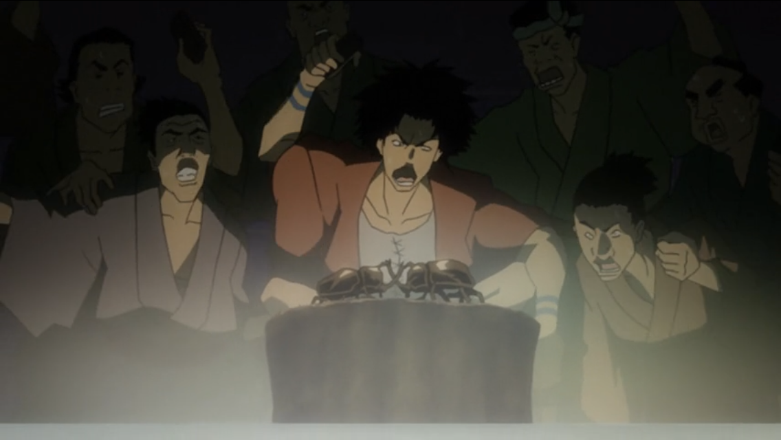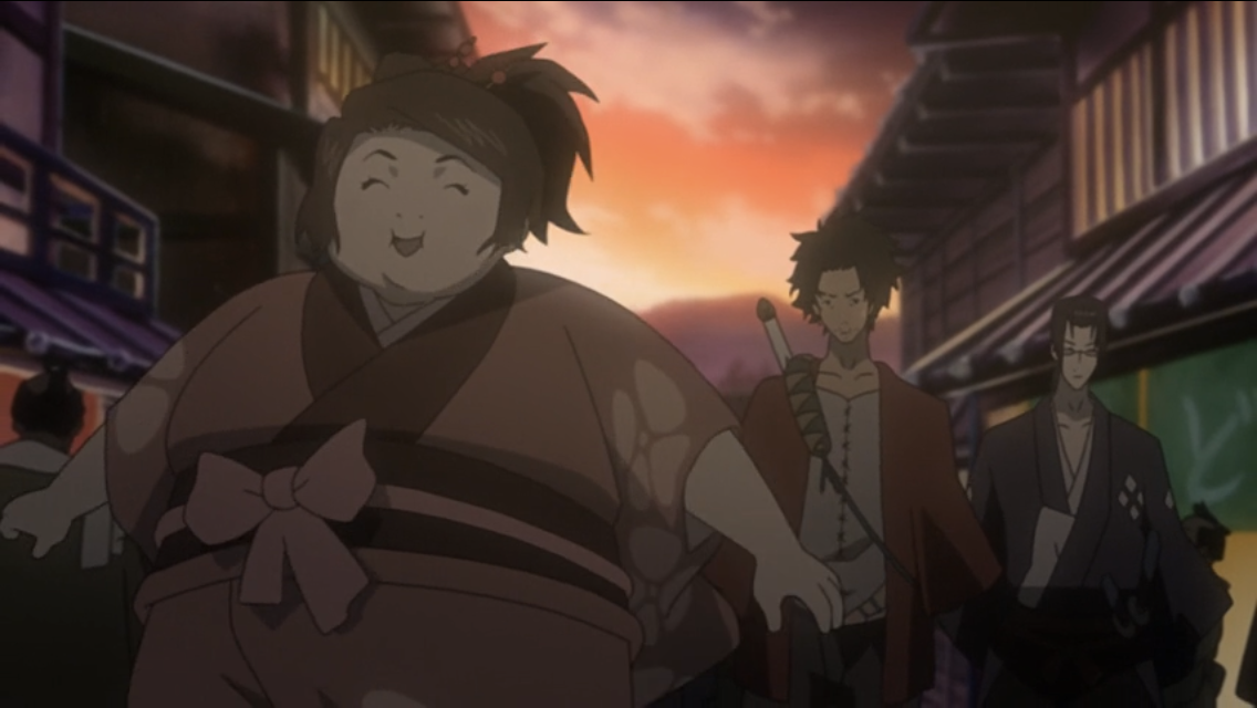 Наивный R-17. Вот вроде бы в аниме есть всё: поножовщина, принудительная работа в барделях, порой показанная в деталях, и в целом атмосфера полного беспредела, происходящего вокруг. Но! Фристайл, граффити, бейсбол и прочую (не спорю забавную) лабуду, как по мне, авторы понавставляли зря. Афросамурай к примеру и без всего этого фарса вышел очень хорошим произведением.