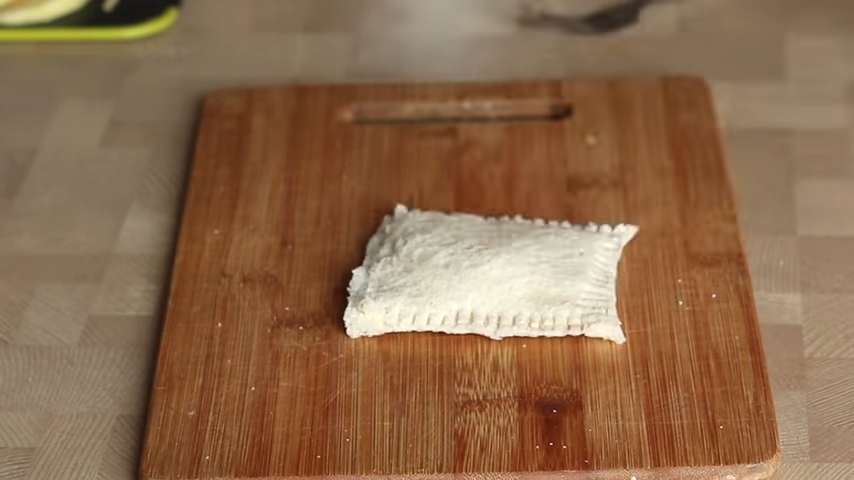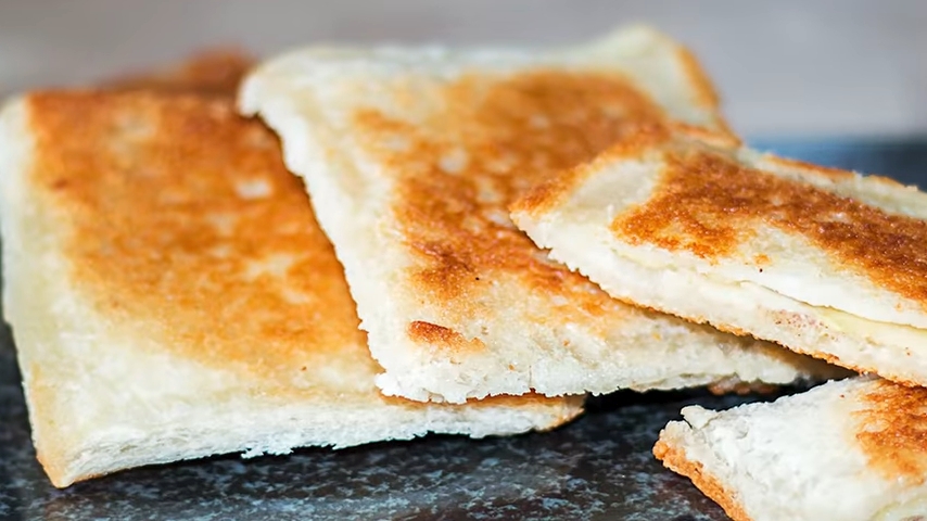 Чуть смочите водой края хлеба, накройте вторым куском и вилкой слепите края.