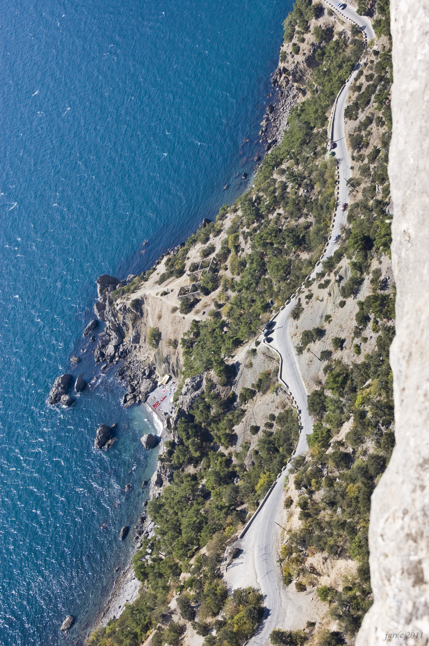 Тоже короткий участок дороги от поворота с трассы Севастополь-Ялта и вниз, к морю, на котором будет несколько шикарных панорам. А в конце пути - шикарные пляжи и, по-моему, самая чистая вода на Черном море (во всяком случае, чище воды я не видел).