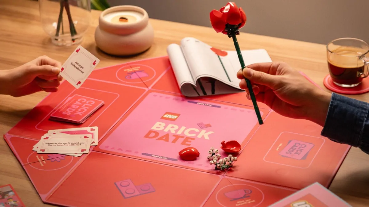Больше никаких скучных свиданий. LEGO создали Brick Date – набор из модели в виде букета роз и карточек с вопросами, которые помогут лучше узнать друг друга.