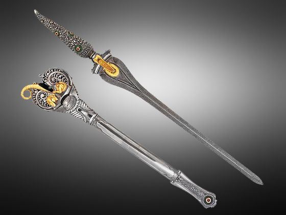 Два миллиона сто тысяч долларов – такова стоимость уникального ножа с красивым названием «Жемчужина Востока». Его изготовил один из самых известных дизайнеров ножей Buster Warenski. Над этим произведением искусства он трудился почти десять лет. Нож украшен золотом и драгоценными камнями.