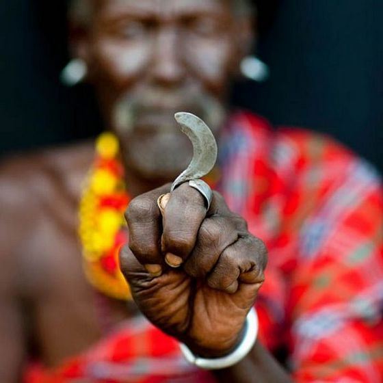 Ножом, который надевали на палец, пользовалось племя туркана. Внешне он похож на кольцо с восьмисантиметровой выступающей пластиной. Его изготавливали из алюминия и железа. Такое оружие использовали не только в бою, стараясь повредить глаза противника, но и в быту при приготовлении пищи, и даже в качестве зубочистки.