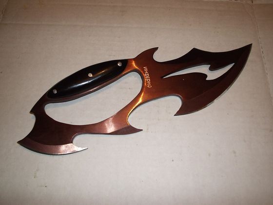 Кастет – это разновидность древнего ножа – катара. Пик популярности ножа-кастета пришёлся на времена золотой лихорадки. Особенно часто он использовался в преступной среде. Лезвие кастета прикреплено к ручке перпендикулярно. Его носят на поясе или скрытно в рукаве.