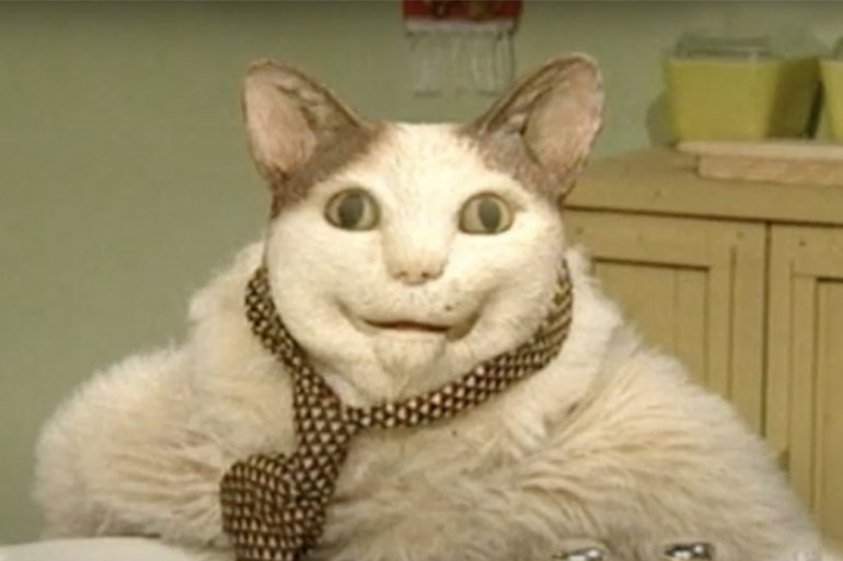 Если вы хотели узнать, что означает слово «криповый», то посмотрите на этого кота. Вроде бы милый котик, в котором слишком много неправильного, создаёт эффект зловещей долины. Этот зверёк — кукла из телевизионного американского шоу TV Funhouse. В этом году изображение использовали и оживили с помощью нейросети, а еще наложили звуковое сопровождение, так что кот стал произносить абсурдный текст. Стало ещё страшнее. Мем завирусился как раз к Хэллоуину — ну очень жутко.