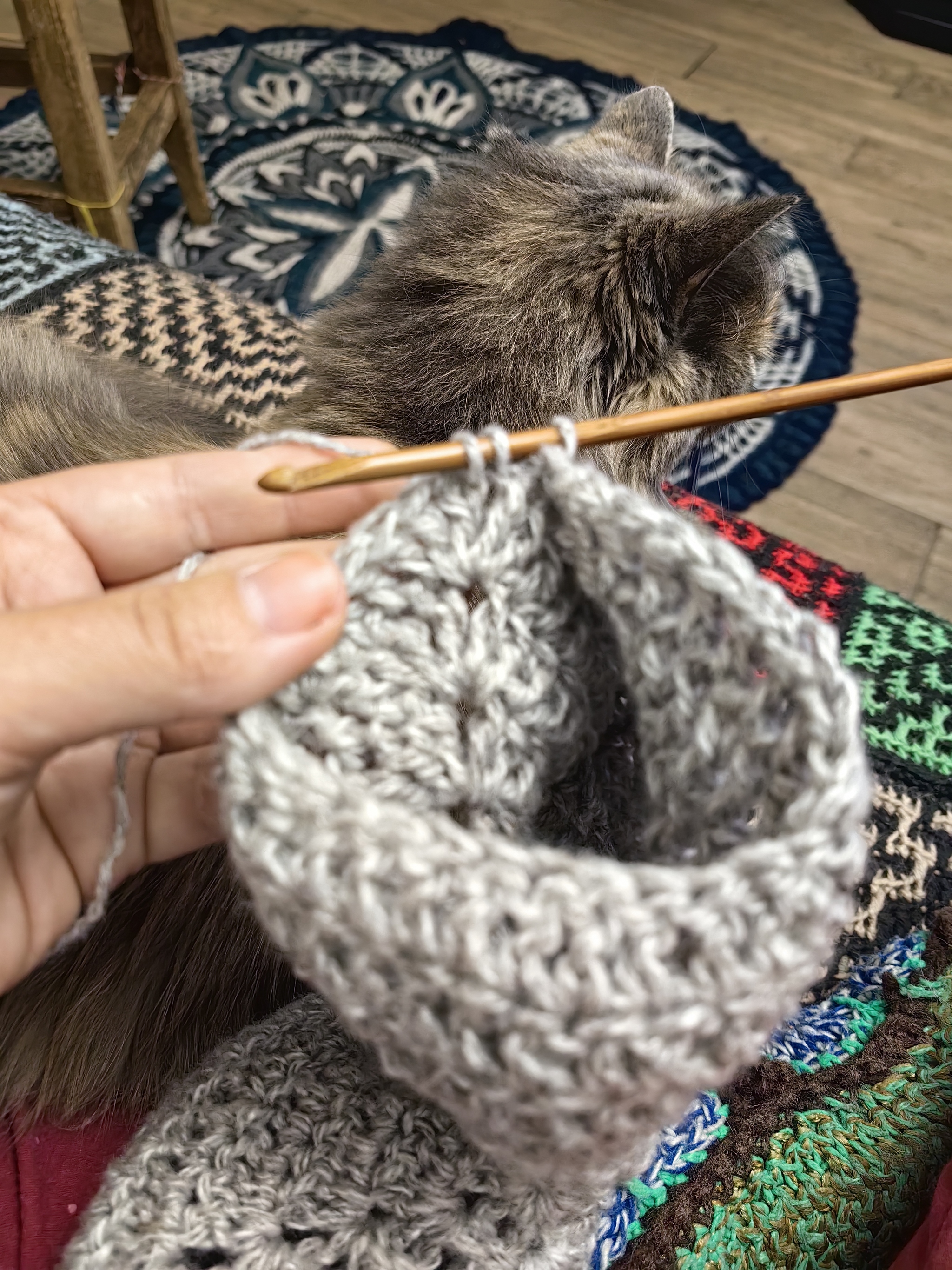 На 34 размер на тушку я связала 7 рядов столбиков с накидом 3.5 номером крючка карачаевским двухниточным акрилом, на 38 размер думала 8 рядов крючком 4.5. Но получилось велико, в итоге распустила с вязала носки мозаичным вязанием, схему на 14 рядов взяла в интернете.