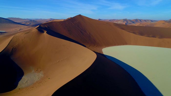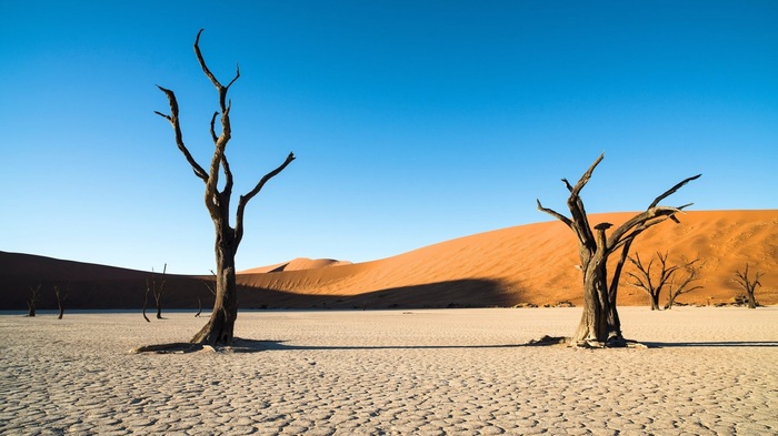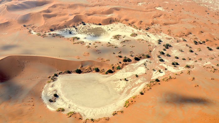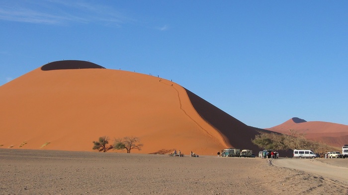 В самом центре знаменитой пустыни Намиб находится место под названием Соссусфлей которое представляет из себя глинистое плато окруженное высокими песчаными дюнами.